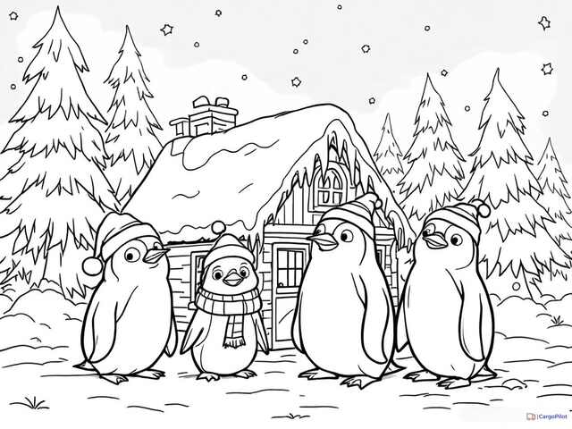 Kolorowanka-Pingwiny Zimą